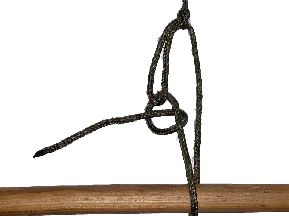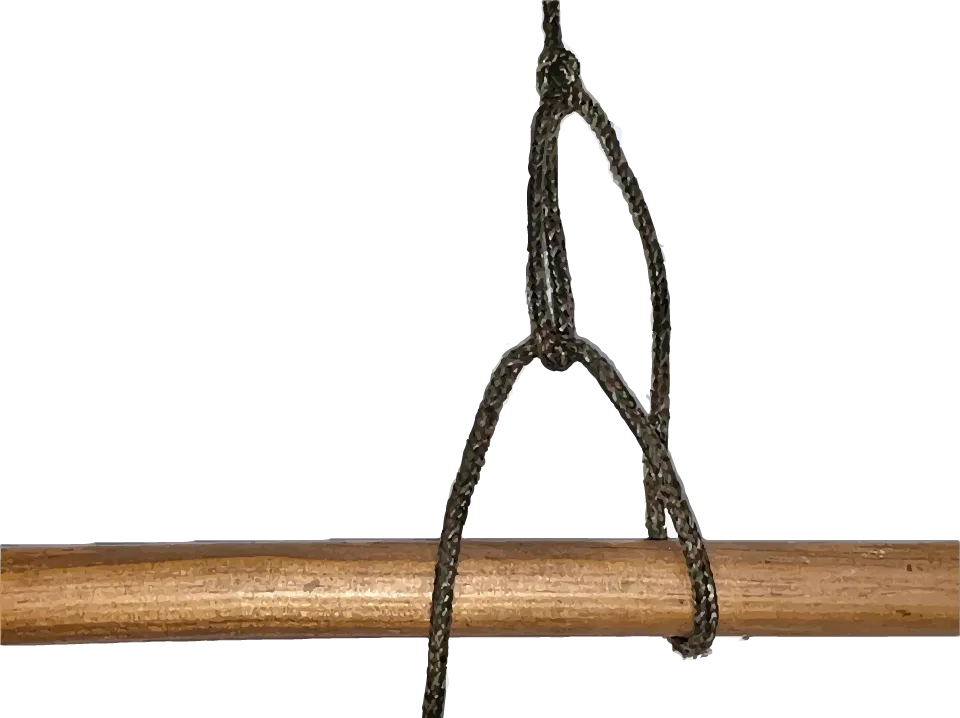 You can alternatively use this hitch to secure cordage to a handle and turn the handle to pull slack and tighten the standing part to anything needed. You will want to secure the handle once you finish tightening, so it does not loosen.