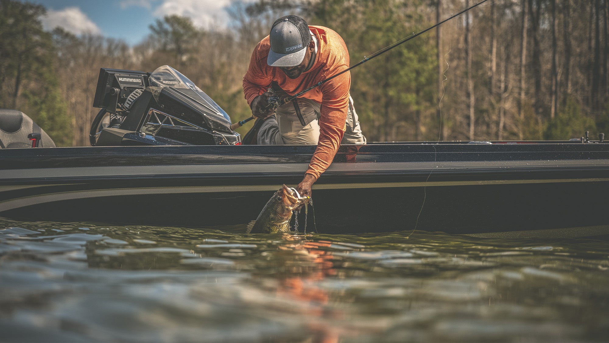 Skipping jigs shine in the immediate pre- and post-spawn when bass are staging under docks, bushes, pontoon boats, and other overhead cover. In order to skip this bait across the surface, it’s best to use a side-arm roll cast, so that you can release the bait close to the surface. Think of skipping a rock across the surface of a pond, and then try to use your rod to do the same with your jig. The bass typically bite a skipping jig as soon as they see it, as they’ve positioned themselves near this cover to feed.