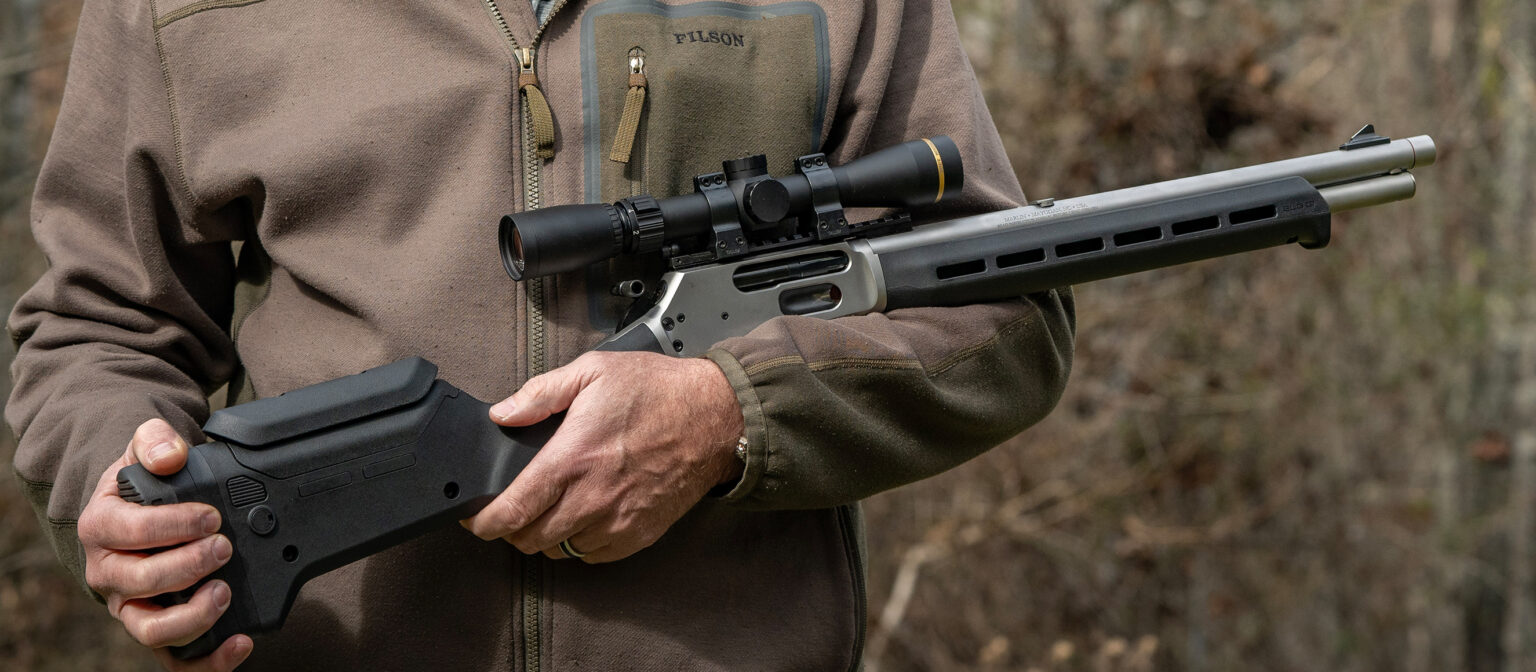 Under Ruger ownership, Marlin has been doing a bang up job of making and modernizing lever guns. They’ve refined the design and production of these guns so that they run like a fine timepieces and in some cases shoot better than you’d think a lever gun should. (Take a look at our review of the Model 1895 Dark if you want an example.) Now, Marlin is also partnering with other manufactures to offer even lever-gun option previously available only from custom makers. Their new Model 1895 Trapper with a Magpul stock is a perfect example, and it just might be the best lever gun Marlin has crafted yet. I got my hands on one recently and put it through its paces on my home range. Here’s how Marlin’s latest lever gun fared.