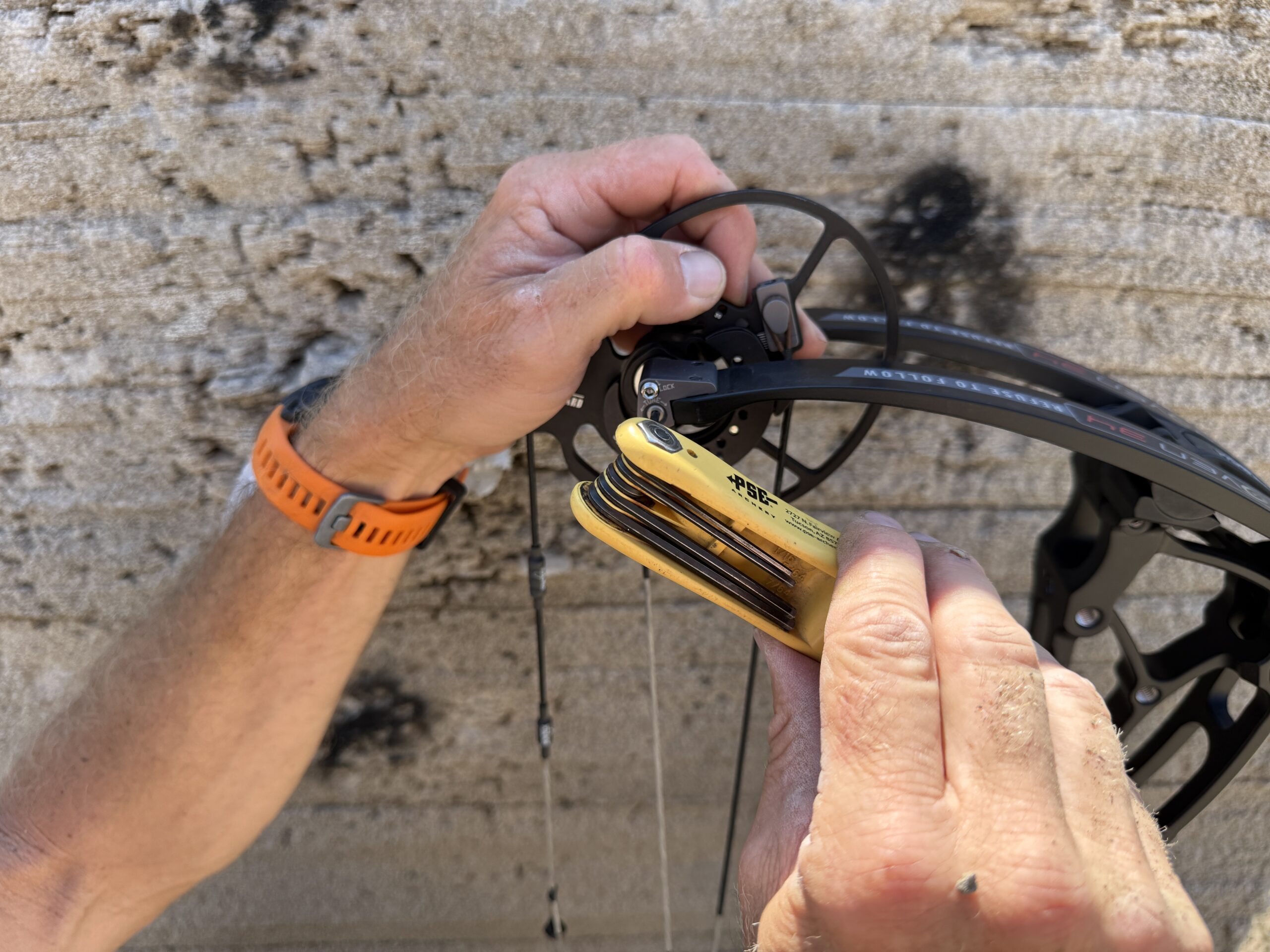 Bowtech includes timing dots on the cam, which saves time. If you need to make timing adjustments, unlock the TimeLock locking screw. Next, insert your Allen wrench into the TimeLock slot and adjust.
