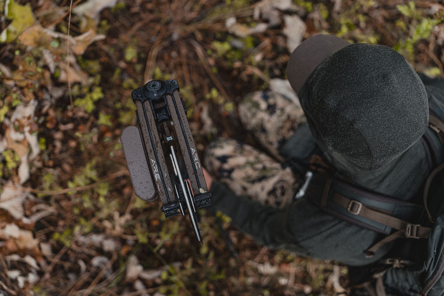 I attached a Spot-Hogg Hogg Father sight into the riser's middle with Bridge-Lock connection. I opted to use Cutter’s 12-inch Altitude Pro Stabilizer with a trio of one-ounce weights. (Mathews sells the Integrated Bridge-Lock V-Bar mount and Angled Bridge-Lock Stabilizer separately.) Finally, I added the Engage ARC Limb Legs, which keep the bottom of the cam off the ground. ARC bows can be shot with the Engage ARC Limb Legs attached.