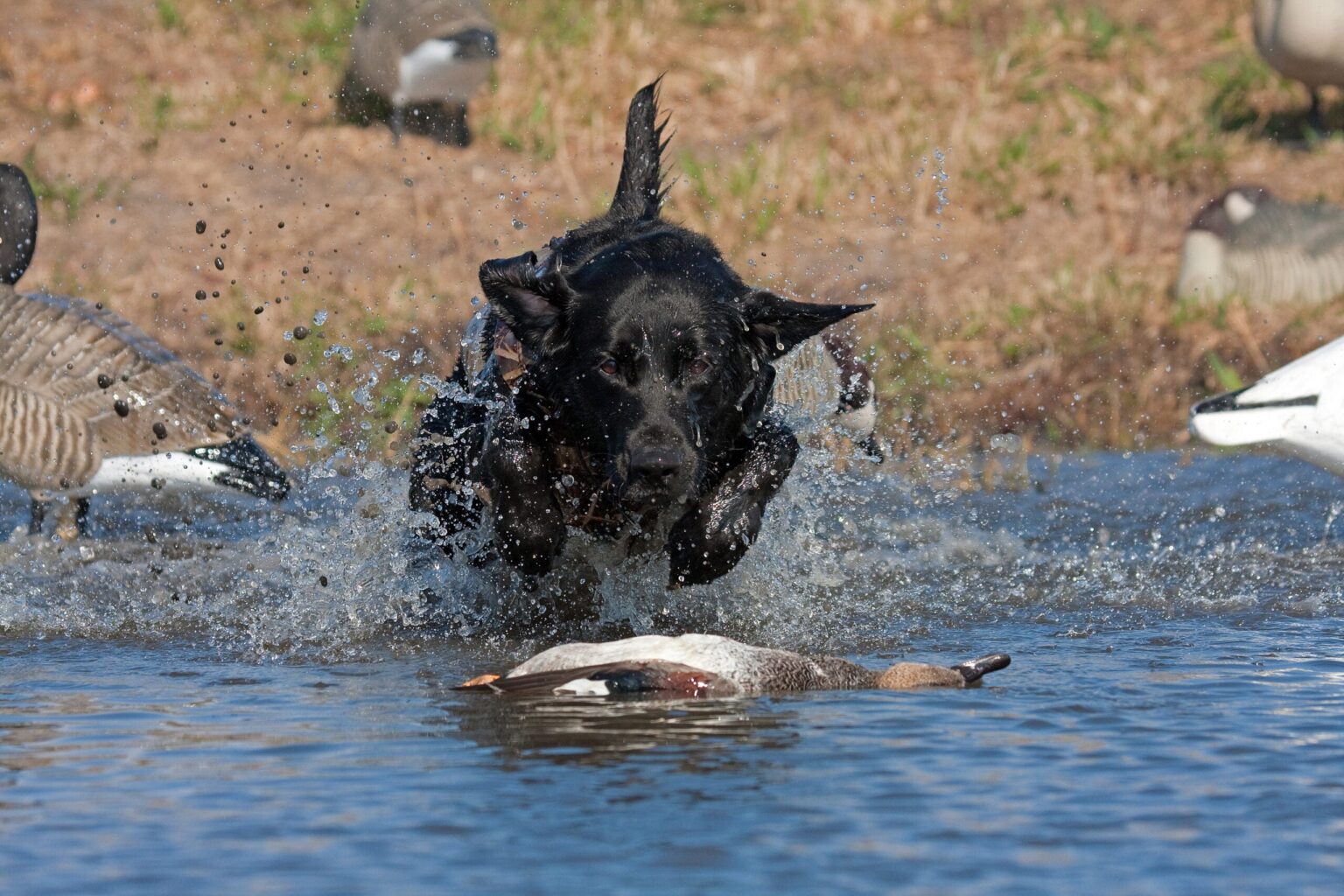 Both English and American Labs are good duck hunting dogs. They’ll both flush and retrieve upland birds as well. Typically, the American Lab is the more intense, higher-energy, higher-drive dog, and according to its fans, the better choice to hunt every day of duck season, or to make countless retrieves during a spring snow goose hunt. English Labs might be better suited to weekend hunters and first-time Lab owners who want a dog that’s easy train, lower-key, but can still retrieve limits of ducks.