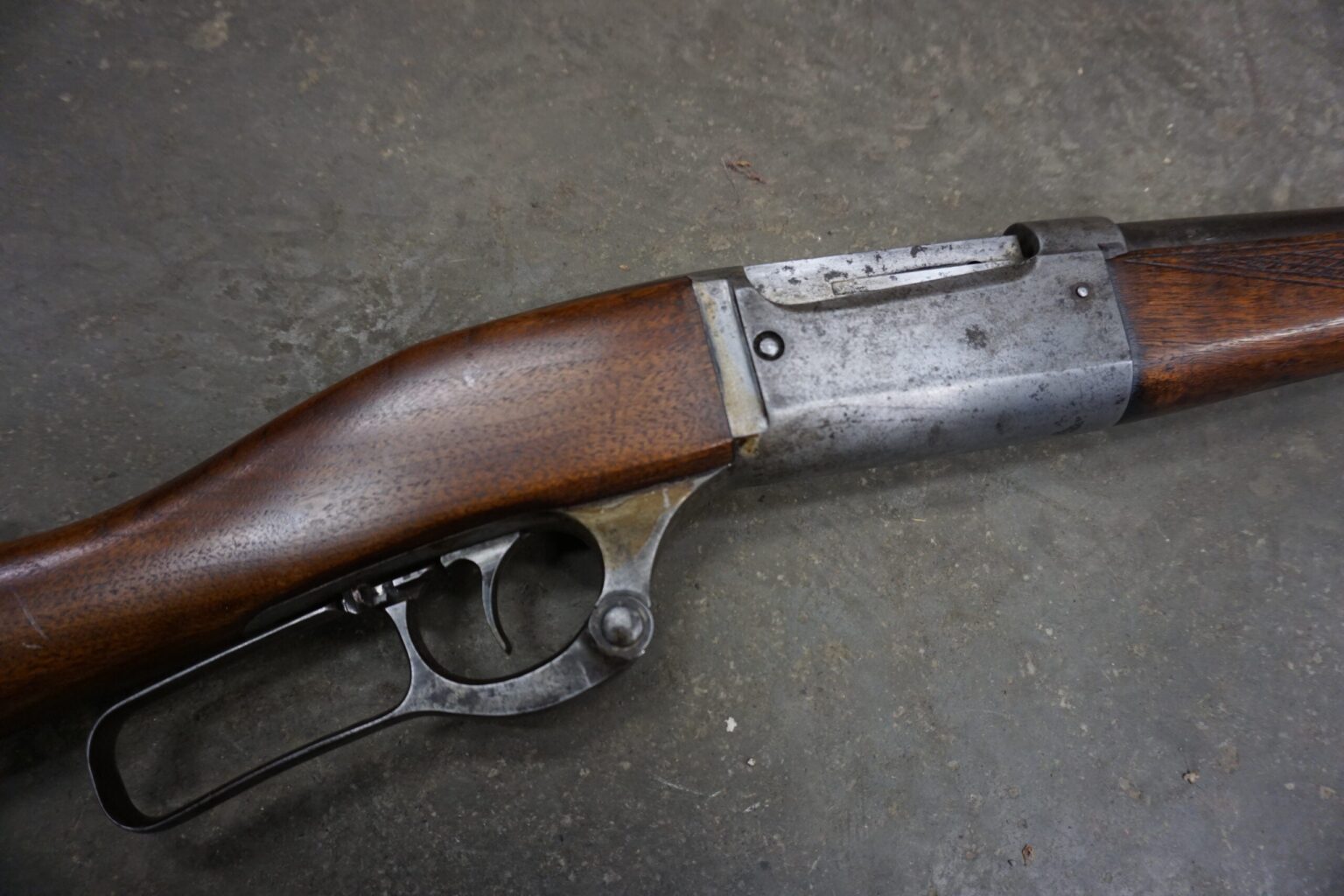 It was an altogether different kind of gun than my Remington. Every tool or vehicle my grandpa loved looked like hell. And by those standards, the Model 99 was an object of true affection. The gun had been ground down by the mountains. Its bluing was gone, worn to bare metal. The stock had dents from branches and rocks, and the forend had been etched with a scribe where someone tried to checker it. Somewhere along the line, the barrel was replaced with a .32-40 barrel that was re-chambered in .32 Special and cut down to about 20 inches. The sights were aftermarket, and there were extra holes drilled in the tang where someone had tried to retro-fit the gun with a peep sight but failed.