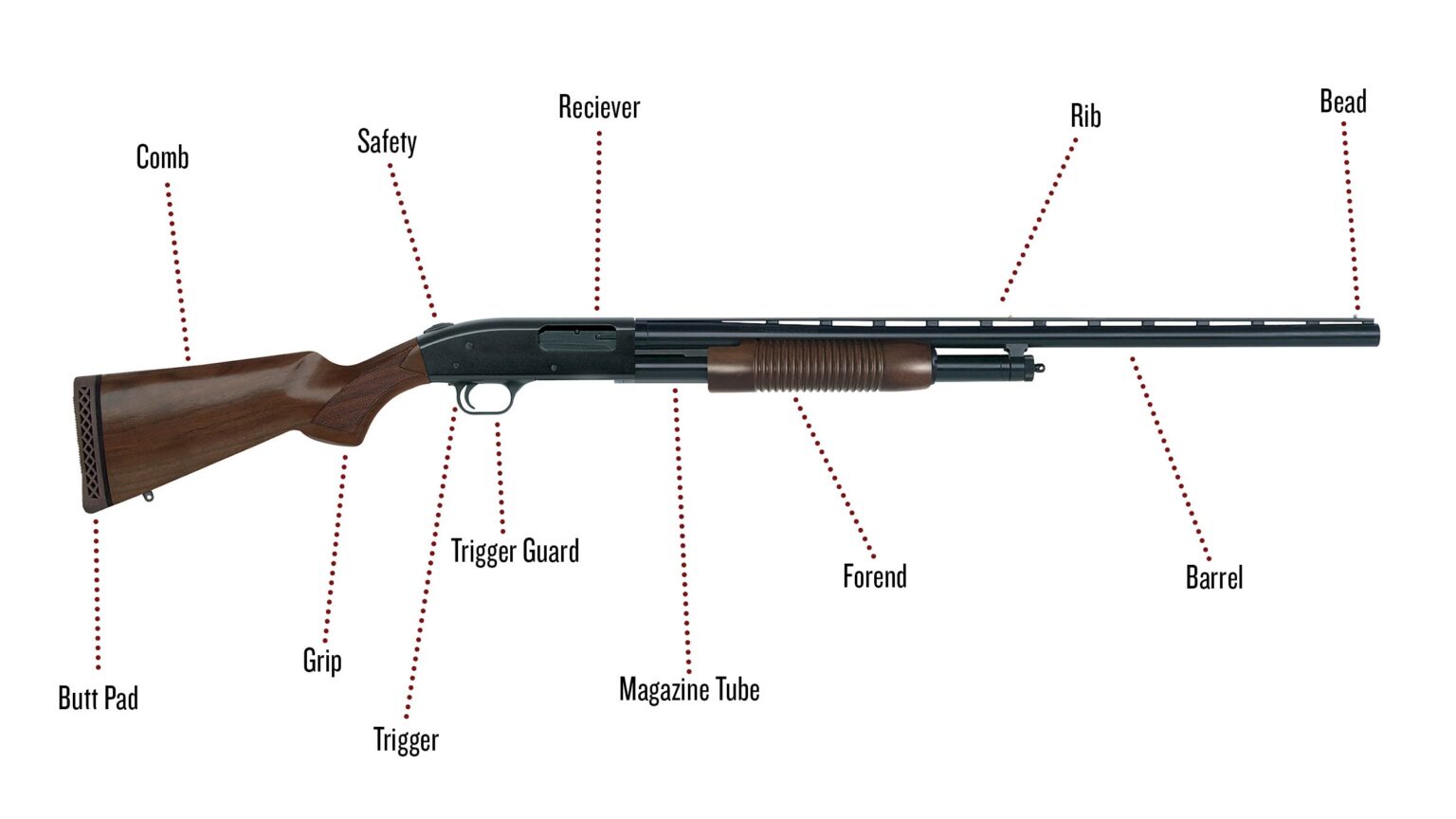 Shotguns come in three main types: break-action, pump or slide-action, and semiautomatic. All of them share several parts in common, so we’ll cover those first.