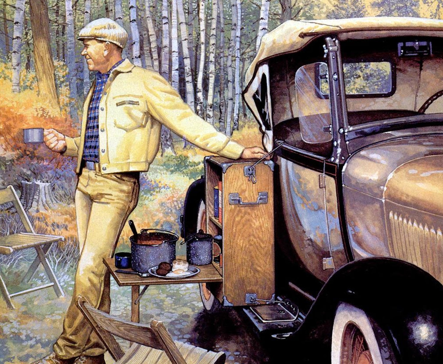 The evolution of my grub box is a good example. I started in the grub-box-building business by making one with shelves and drawers that sat on the running board of a car. The front was hinged at the bottom so that it swung out and was supported by a little leg to make a table. That was a handy box. You could stop beside the road almost anywhere, drop the front, and in a few minutes have a lunch ready. However, the car manufacturers put it out of business when they quit making running boards.