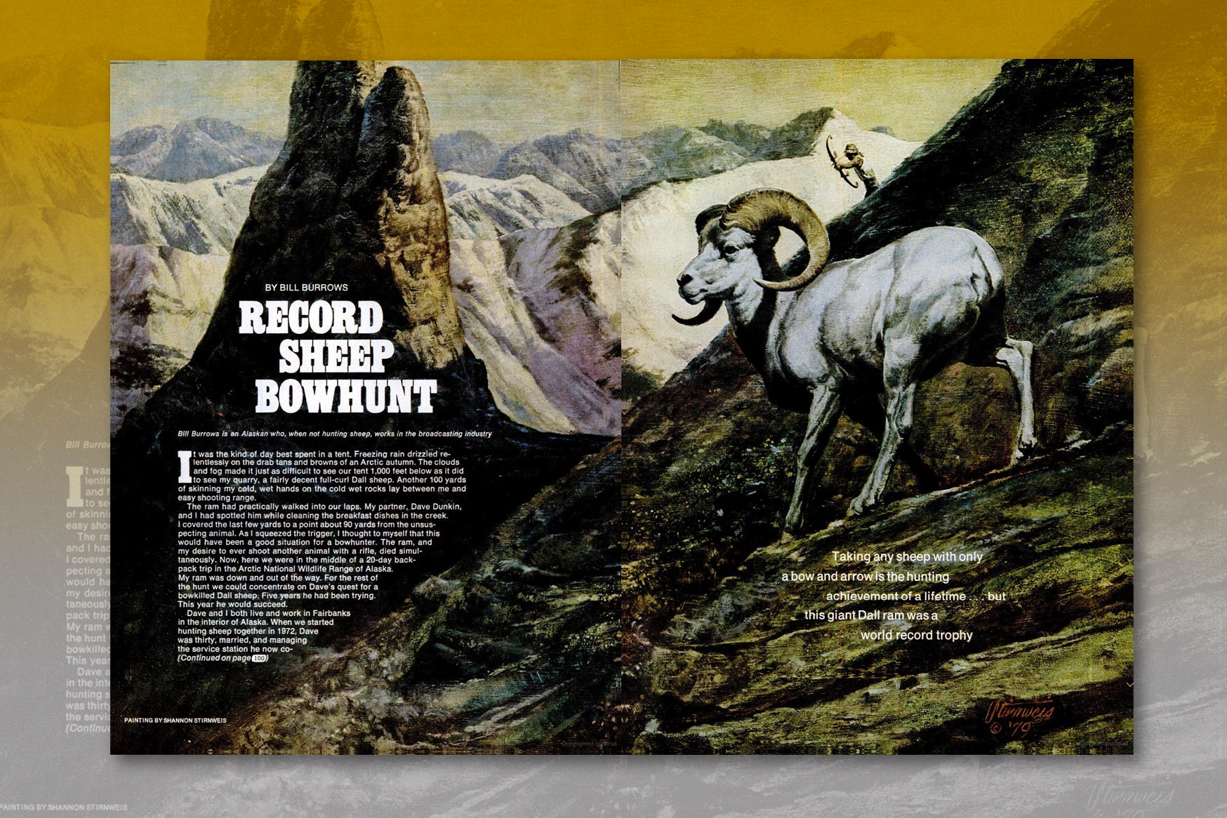Dave and I knew we had ourselves some kind of trophy, but we never seriously thought it would do much more than make the Pope and Young record book. Ninety days after it was taken, Dave finally got around to having his ram measured. Pope and Young officials in Anchorage scored the head at 163 2/8, beating the existing World Record by 1/8 of a point! But don’t expect to see Dave’s trophy in any record book. Even though five Pope and Young officials measured the head and even though Pope and Young headquarters has approved that score, Pope and Young has thrown up a final hurdle that a Fairbanks bow hunter who values his trophy would naturally refuse to attempt. Dave has decided not to ship his trophy to Salt Lake City, as required, to be measured again by the competition judges. The risk of loss or damage to a once-in-a-lifetime ram-not to mention the expense—just isn’t worth it. Besides, just having bagged a ram with a bow and arrow, never mind how big it is, is enough of an accomplishment.