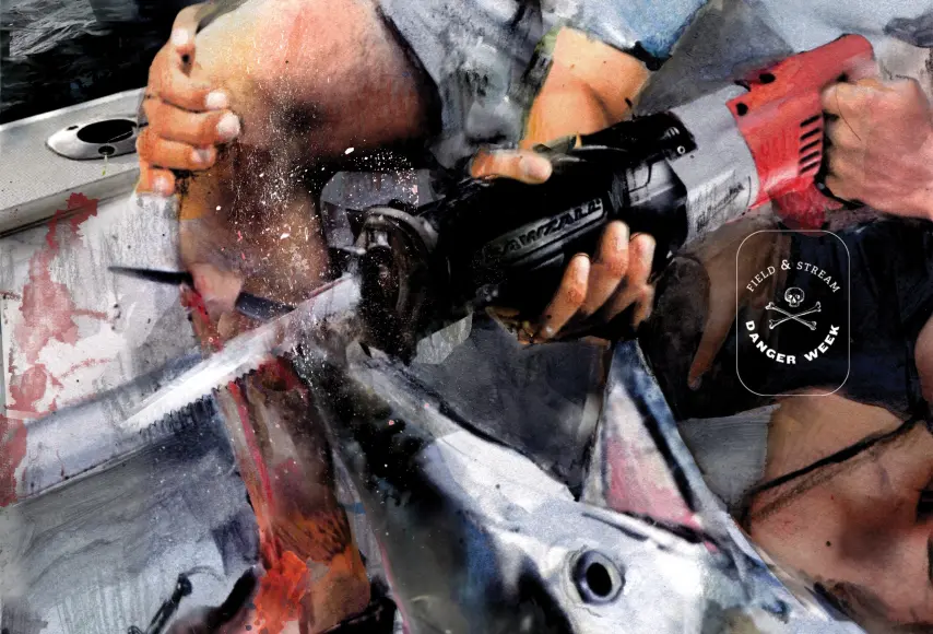 Our 22-foot boat didn’t have a transom door that we could slide the fish into. We had to lift the marlin and pull it in. But the dead weight was too heavy for us. Then the captain had the idea of wrapping rope around a cleat and using it as a pulley to hoist the fish in. Two guys would lift the marlin, while the third would pull on the rope. I’d been fishing long enough to know not to position myself in front of a marlin’s bill, but I was tired and just wanted to get the fish in the boat. I said I’d take the rope. Once we got enough of the fish over the gunnel that its weight would carry it the rest of the way, the marlin started sliding into the boat—and came right at me.