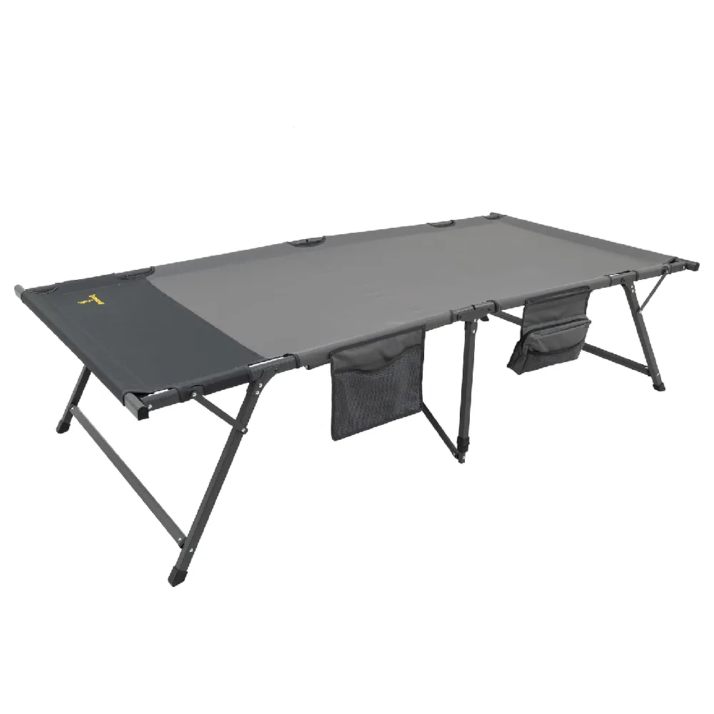 With over 7 feet of sleeping length and a 450-pound weight capacity, anyone can sleep on it. It’s easy to set up and rugged enough to handle a pile of gear during the day and be ready for a night in camp. I find myself putting clothes, gear, or whatever I might have lying around on the cot and off the ground. This keeps my gear clean and dry during the day when people are running around camp. The large side pockets also come in handy to keep your phone and any tools accessible when you need them.