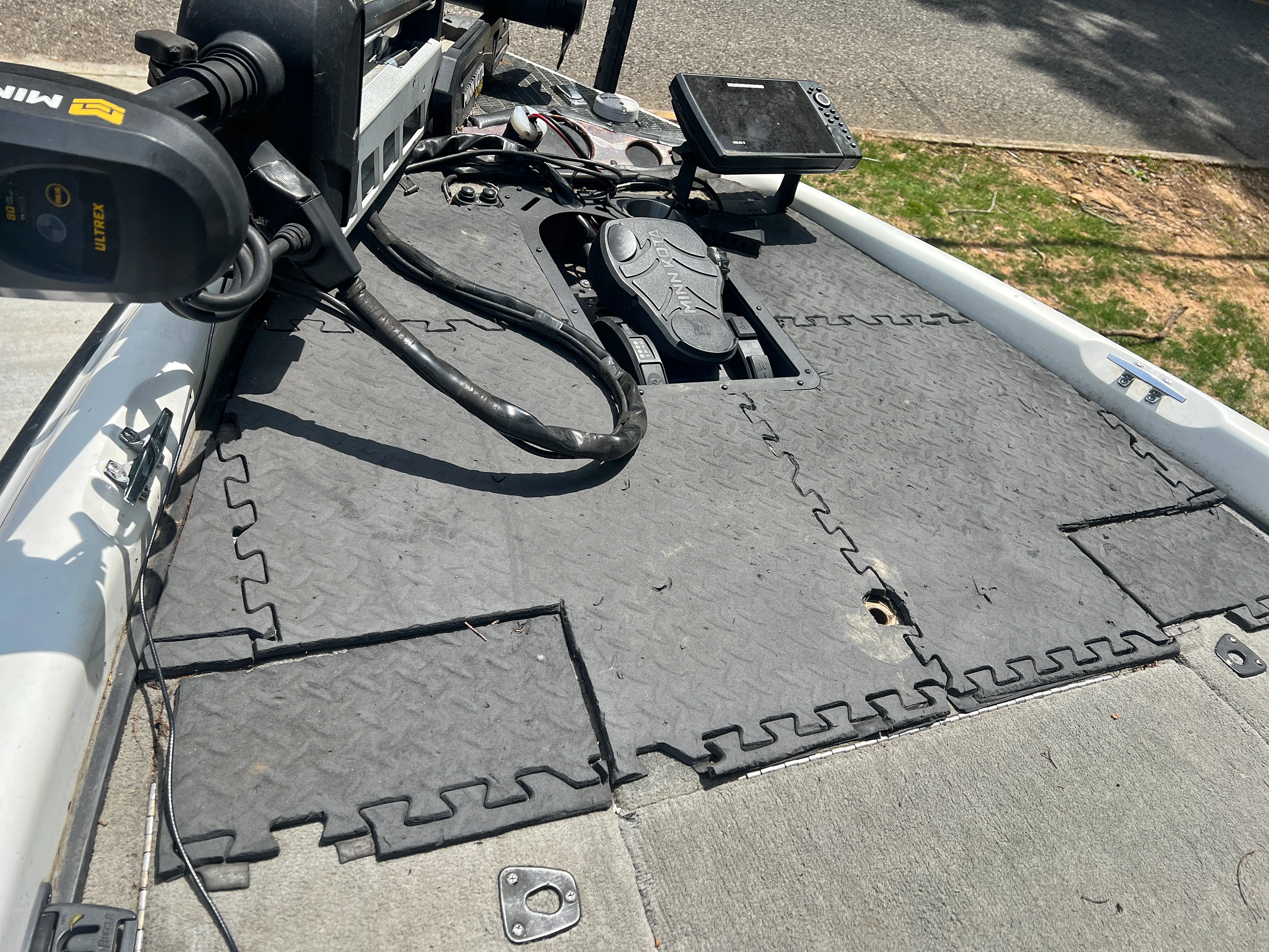Most boats that are at least 20 years old don’t have padding on the front deck. When it comes to fatigue, standing on a hard surface all day wears your legs out. While Neal was still using the Triton, my dad helped him glue some soft tiles to the front deck. These are like the ones you’d expect to see in a kid’s playroom, and you’d be surprised how helpful they are. This isn’t the most aesthetically pleasing solution, and the material can get slick when wet, but it works wonders in cutting down on fatigue.